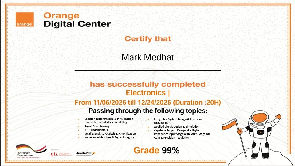 I'm Mark. An Electrical, (Electronics & Communications) Engineer with a strong interest in the evolving fields of electronics & communication systems. My background combines technical expertise with hands-on experience in software, hardware and signal processing, and I'm passionate about applying engineering principles to solve real-world challenges.
