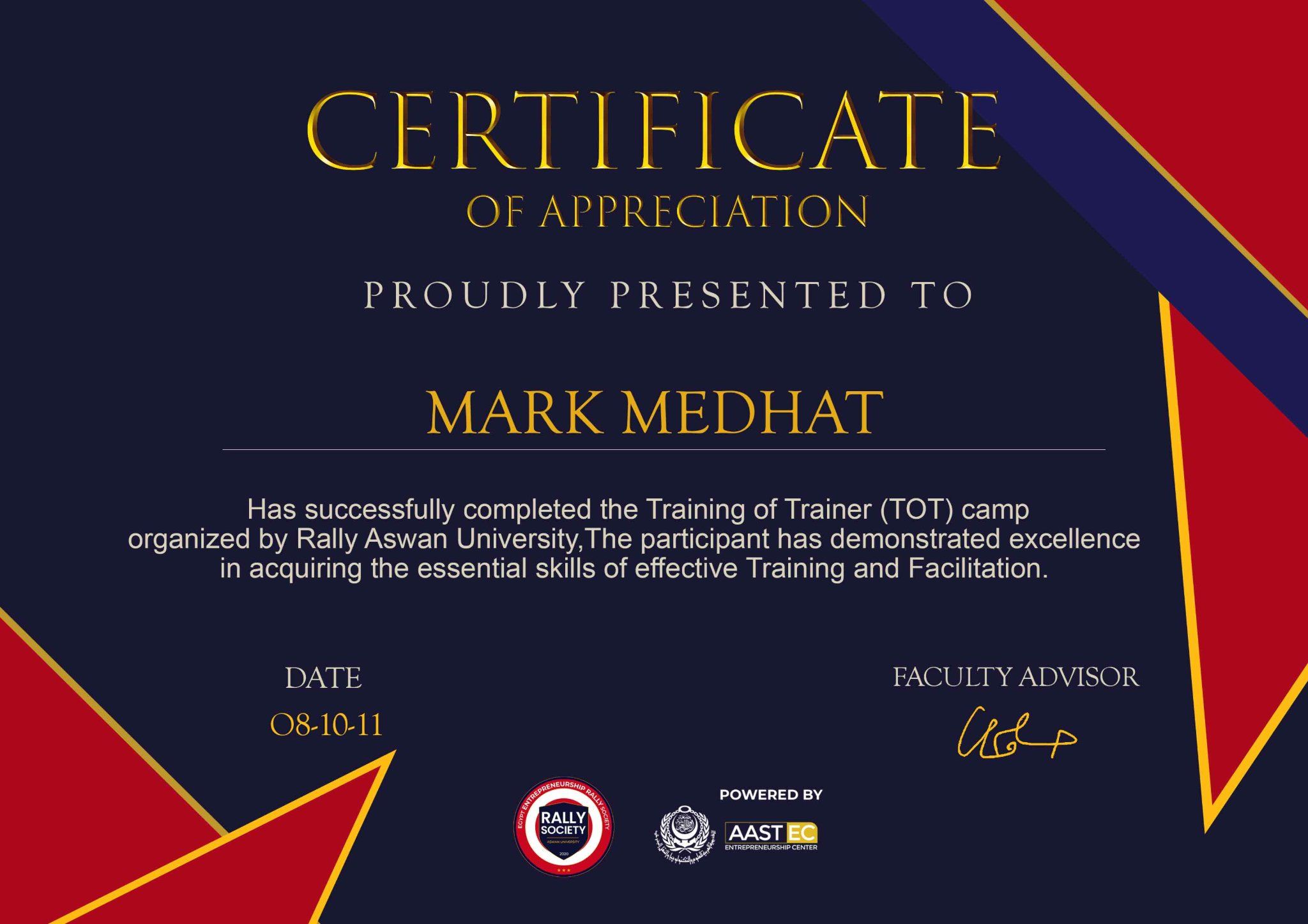 Demonstrated excellence in acquiring essential skills of effective Training and Facilitation. Developed strong communication and leadership capabilities.
